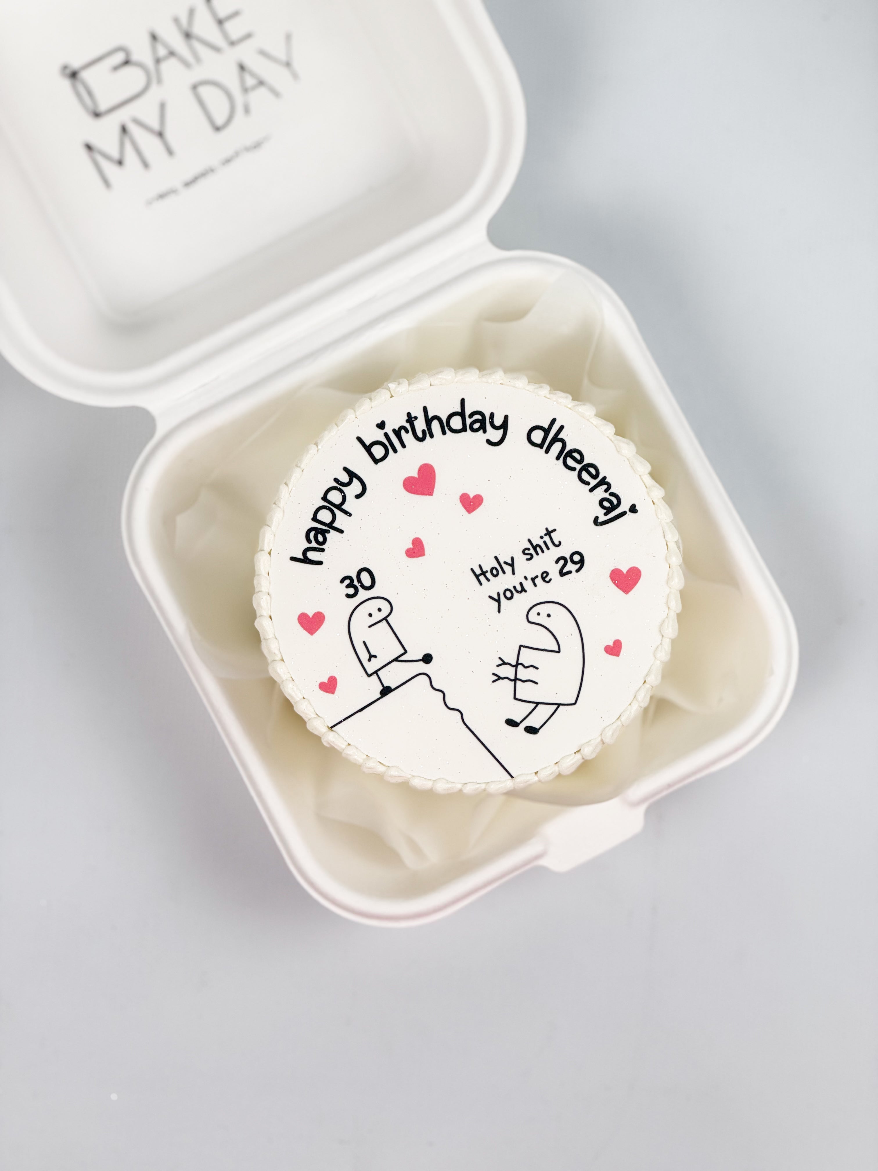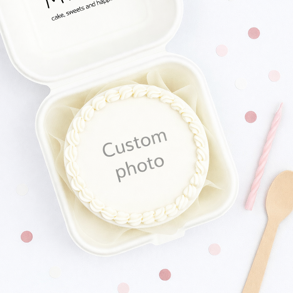This bento cake is a perfect mini cake for two (≈320 g) - perfect for a small celebration, date night, or a thoughtful sweet gift. Each cake comes with set of: a candle, a wooden spoon, a match and striker. Minimal, elegant, and fully customizable!
